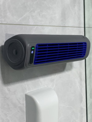 Place it on your desktop (or mount it on the wall) and press the start button. That's it! You will enjoy the sensation of cold air blowing directly onto you.